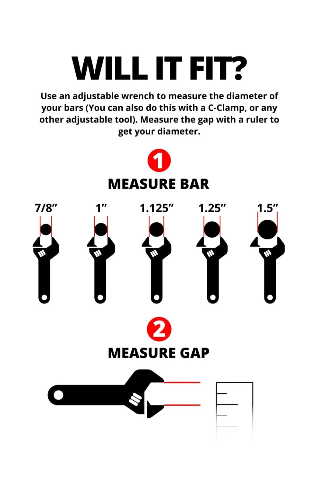 BARS BARS AND MORE BARS - Works with Trackers, Clip Ons, Moto, Zero Drag, Low Drag, High Drag, Maynard, Zed, Frisco, Mustache, Keystone, Clubman, H-Bar, Window, Champs, Breezers, Ape Hangers. Custom 7/8", 1", 1.15" bushings included. Clamp mounts directly to 1.25" Bars without bushing.